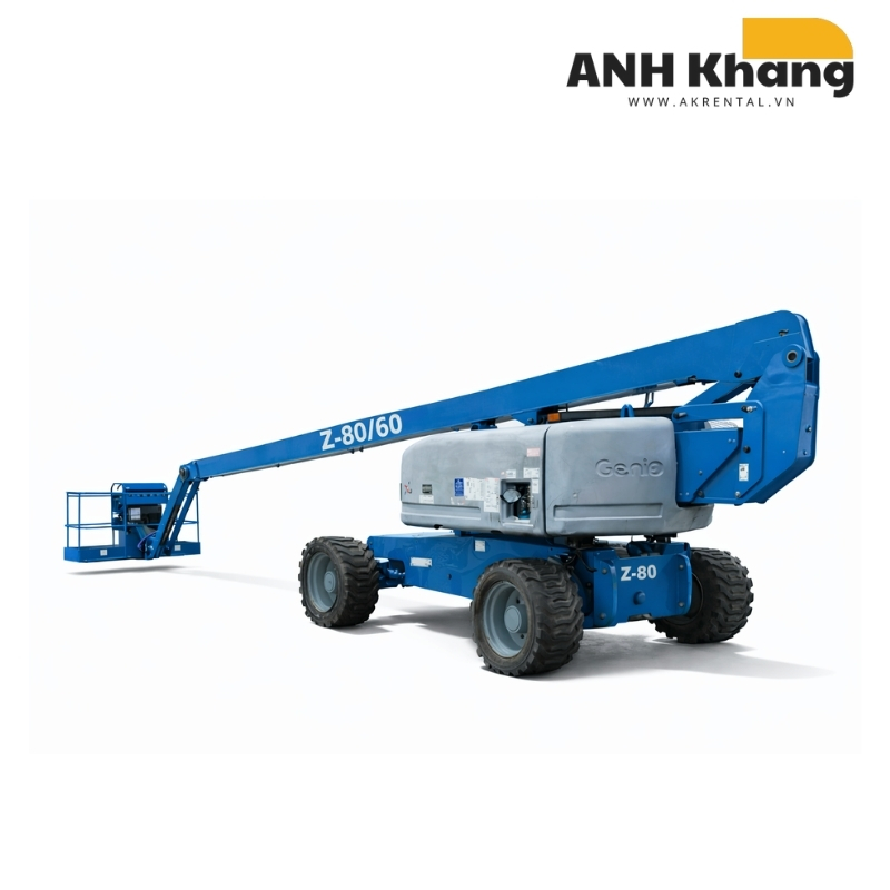 Xe nâng người Genie Z-80/60 là một thiết bị nâng mạnh mẽ, lý tưởng cho các công việc đòi hỏi chiều cao làm việc lớn và tải trọng nâng ổn định. Với chiều cao tối đa lên đến 25,80m và khả năng nâng tải trọng 227kg, sản phẩm này có thể tiếp cận các công trình cao một cách an toàn và hiệu quả. Được trang bị động cơ Diesel, Genie Z-80/60 mang lại hiệu suất vượt trội, khả năng vận hành bền bỉ, đáp ứng nhu cầu làm việc trong những môi trường khắc nghiệt.